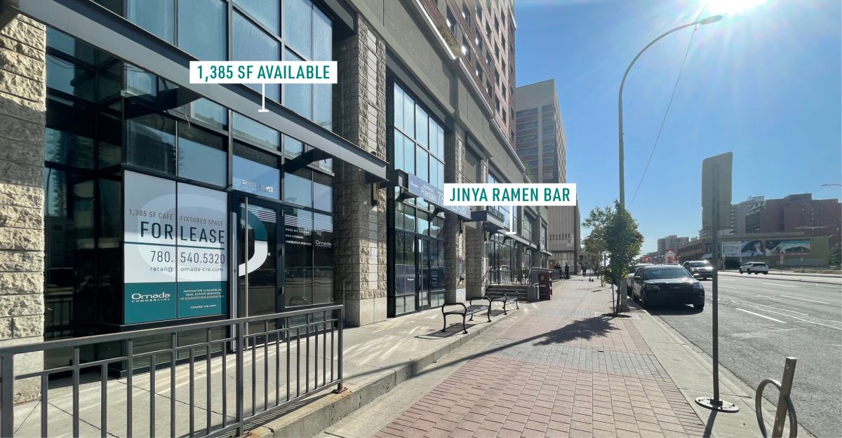 - 1,385 SF café fixtured space along 109 Street