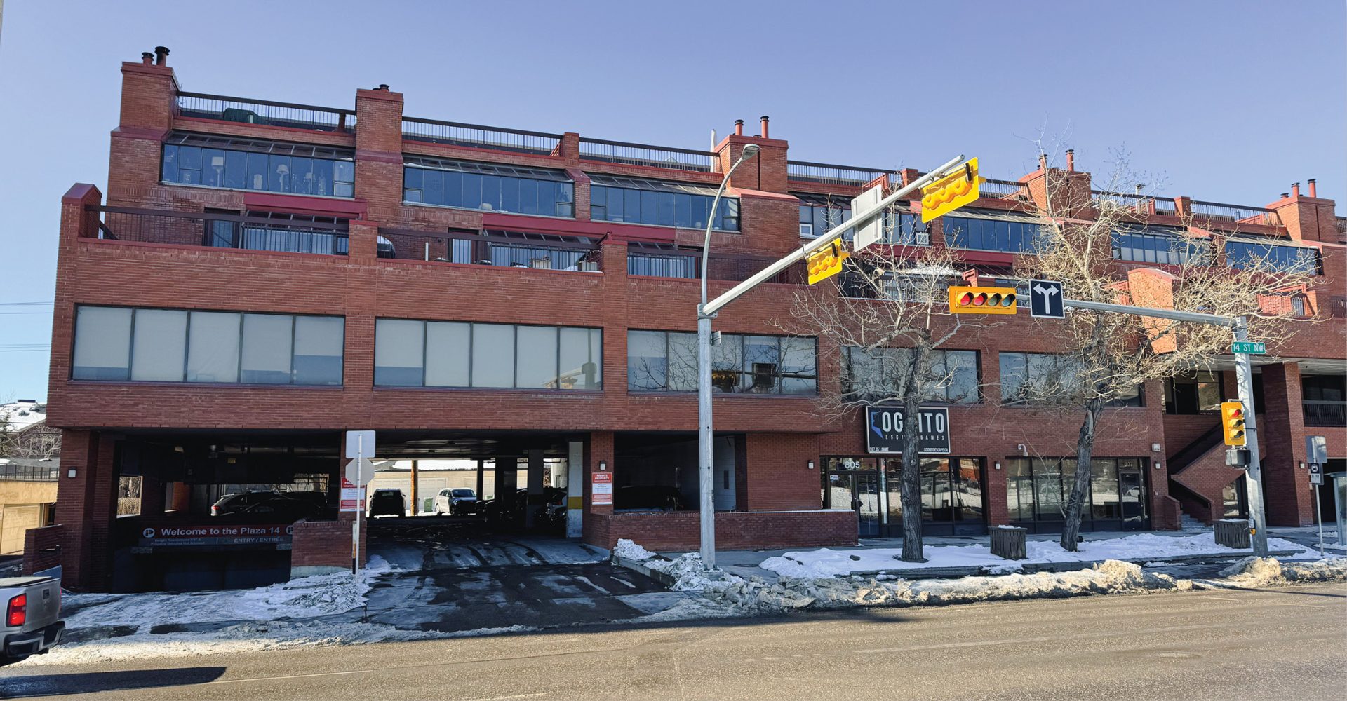 - Plaza 14 is strategically located along 14th Street -one of Calgary's busiest arteries connecting north and south Calgary, as well as all the communities along the road. The main thoroughfare is home to abundant restaurants, retail stores, schools, churches, and more.